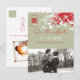 Moderna zen röda och ljust mossgröna bambubladskonturer med en enkel minimalistisk rektangel dubbel lycksymbol, fotografera spara datum ankomstkort. En elegant kinesisk / orientalisk / asiatisk brölloppsdesign som är stilren, modern och klassisk.