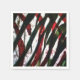 Abstrakt foto, med breda, slumpmässiga ränder, som flätas samman i, kraftiga färger i, svart, rött, mörkgrönt, olivgrönt och vitt-påminner om, bambustjälkar.