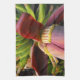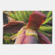 MaeFlowers originalfotografi på köket är en stängning av en bananblomma. Det tropiska fotot har färg rakt från naturen. I bakgrunden finns det grönt av gulten, omogna bananer. I förgrunden är riken, mörken rödbrun av blombladet, så kallad bracts, kurvan utåt. Under varje petal ljuger lagrar en ordnad rad med små gulter. Detta är de knoppar som så småningom blir bananer. Pälsen är en lättare, dammig rosa färg när lagrar uppträder mot blommans hjärta.