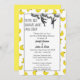 Roligtens Jack och Jill-möhippa med ett banans- och aptema! Utformningen har en vit bakgrund med mönster på gult-bananer. I mitten finns en vit yta med mörk grått trim. Överst är en mörk grått-vinstockar med silhuetter av en brud som ska vara och som ska vara apa som svingar från vinerna. Gumman som apa bär en bukslips och bruden som ska vara apa bär en lila buk på huvudet. Det finns en text till lämnat om aporna som säger att de bara är bananer om varandra! Nedan visas anpassadet där du kan lägga till information om Jack och Jill-möhippa i inbjudan. Bananas omvända sida Om varannan inbjudan är en solid gult för bananer. Ett sött och unikt tema för Jack och möhippa.