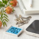 Bandblocksblå Fyrkantig Silverfärgad Nyckelring
