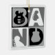 Monokromatiska block som stavar ord-bandet i musikalisk text är ett unikt mönster för musiker, musiklärare och studenter i band- och marschband vid back to school, födelsedagar, helgdagar och studenten.