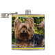 Den berömvärda Yorkshire-skräcken liten hund med brunt och svart kort päls med en elegant nobel vacker ansikte med flytande öron på denna design .Guldfolie struktur.