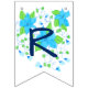 Banderoll med blå blommigt i snyggt, anpassa texten i grattis på födelsedagen för alla speciella firande eller tillfälle. Den vita bakgrunden kan ändras till den favorit som finns i Klistra in färg.