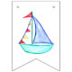 Planerar en nautisk födelsedagsfest? Vattenfärgssegelbåtar i röda nyanser, grönt och gult dekorerar skarp blå brev för en charmerande banderoll som kommer att koordineras med många sommarbaser!