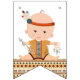 Banderoll för stambabydusch med ett vackert baby med en söt Native American-konfektion med pil och dröm catcher på en aztec indisk sydvästlig designbakgrund med guld glitter brev, stavning: "Det är en pojke". Du kan ändra bakgrunden färg bakom spädbarn. Det här är en tryckt design utan äkta glitter.