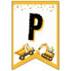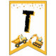 Ett byggtema som buntar Grattis på födelsedagen-banderollen perfekt till era små firande!