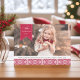 Festive helgdag-fotokortet har ett favoritorienterat vågrät- eller landskapsinriktat foto i fullt som utfaller med rosa och vita accenter. En röd banderoll visas längst upp till lämnad och bär din familj namn och året, medan ditt budskap om anpassningsbar placeras längs grund, vid ett nordiskt mönstrat rand i rött och vitt.