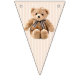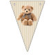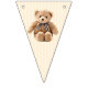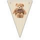 Banderoll med Nalle i pojke, brun, blå och brun med små nallar på flaggor. Perfekt för babydusch eller för födelsedagsfester.
