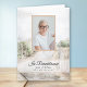 Kom ihåg din älskade och fira deras liv med den charmerande Boardpromenaden till Beach Funeral Folded Program. Tidslinjen för marktjänsten för havsbottnen i anpassningsbarna har ett digitalt vattenfärgat, färgat kustfoto av en rustisk trästrandpromenad som leder till en sandstrand och hav med höga gröntar. Anpassa den med en bild av den avlidne, födsel och död data, personuppgifter och ceremonin för firande i livets kyrkotjänst. Perfekt eller idé för en kusthändelse eller nedgrävning till havs.