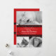 Ett intressant vintertematiskt foto-födelsemeddelande eller Helgdag Photo Card. Ett brett rött band trimmas med snöflingor och en charmerande blomning.