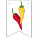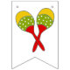 För partyflagga för färgrik Fiesta som themed baner göras i de röda färgerna, gult, grönt och vit. Diagram av maracas, tacoen, flaska av tequilaen, chili pepprar och det oaxaca stilmönster. Fiestaen i stor röd bokstäver dekorerar den mellersta gula flaggor.