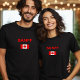 Visar den röda och vita kanadensiska flagga med aple löv och Banff-staden ovanför flagga. Souvenir-design för amerikanska beundrare, turister, besökare, resenärer, Kanadadagen, Banff-invånare, Albertans, Canadians. Underbart sätt att minnas en fantastisk skidsemester i resa eller annan semester till Banff i Kanada.