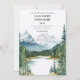 This wedding invitation features a Banff Canada Rocky Mountains Rockies Alberta Destination Watercolor for Mountain Wedding.