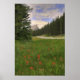 Indiska penselblommor i blomning i Banff nationalpark. Castle Mountain ses i den avlägsna bakgrunden.