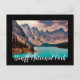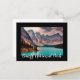 Snyggt scenfoto av Moraine Sjö, Banff National Park, Alberta, Kanada. Svart gräns med vit textövertäckning