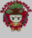 En söt bonsai-karaktär med ett häftigt uttryck har två svärd, med en orange martialkonst och ett huvudband med en röd symbol. Dess huvud är styliserat som en bonsai träd, med en pulserande grönt, mot en dynamisk röd bakgrund och ord "BANZAI BONSAI!" ovan.