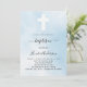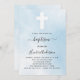 En modern, elegant baptism, som firar ett pojke. Ett ljust blå himmel som bakgrund, dekorerat med ett vitt kor. Anpassa och lägg till namn och detaljer. Svart färgad brev.