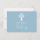 Ett svarskort för himmel blå OSA med en vit blommigt kor. En del av Blommigt Kor Christening Collection.
