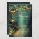A whimsical watercolor illustration of lush foliage in emerald green and gold, sparkling with fairy lights and magic dust, with dreamy, fairytale lanterns, decorates this spring summer fall winter neutral baptism or christening invitation with an enchanted forest theme. An elegant, modern invitation for a fairytale celebrations. Perfect for moms and parents who love the fairytale forest setting, the fairy forest or fairy garden theme and emerald green and gold and who want a gender neutral celebration.