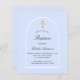 En ljusblå bakgrund och en ljusblå ram. Personalisera och en namn och ceremonidetaljer. Elegant-handskript i stil. Bakåt: ljusblå bakgrund.