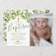 Könsneutrala baptism-/ristinginbjudningar med en klassisk vit bakgrund som kan ändras till vilken färg som helst, vattenfärgen träd grenar med lush grönt foliage, en religiösa guld kor, ett foto av ditt barn och en modern textmall som är lätt att anpassa.