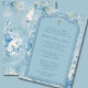 Designad Baptism-julklingsinbjudan med blå och vita blommor är en vacker anpassningsbar. All text och typsnitt kan ändras.
