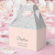 Elegant-baptism eller stolpe-favoritruta med silver-startstoft med information om dina händelser i chic silver-typografi på rosa. Du kan anpassa dig med ditt eget tack till ditt meddelande på motsatt sida. Ett perfekt sätt att tacka gästerna! Designad av Thisisnotme©