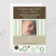Ett sött, icke-traditionellt fotobaptismkort med trendig och gröntar. Formulär och typsnitt kan ändras genom att klicka på knappen "anpassa" och klicka på texten pub som du vill ändra. ©www.artbyjess.