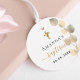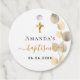 För elegantens baptism, könsneutral. En chic vit bakgrund, dekorerad med guldfärgat eukalyptus löv. Anpassa och lägg till namn om barnet och ett datum. Svarta och gyllene brev. Tillbaka: utrymme för skriva för hand.