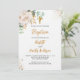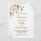 För två barns baptism. En vit bakgrund som dekorerats med eukalyptus greenery, en vit ros, och guldfärgade löv och faux guld glitter faller ned. Personalisera och barnen namn och ceremonidetaljer. Svart och guldfärgad färgad brev. Könsneutralt. Baksida: vit bakgrund med droppar av guldfaux glitter