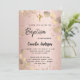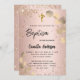 En bakgrund, ro guld, dekorerad med guldeukalyptus och faux guld glitter stoft. Personalisera och en namn och ceremonidetaljer. Svart färgad brev.