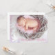 Vit duva med rosa rosett band lägger till din egen inbjudan till baby fotobaptism. Anpassa med information om din baptisminbjudan och ett speciellt foto av din dotter.