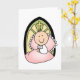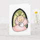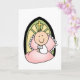 En flicka som bär en rosa väcks mot ett kyrkofönster med ett kor på baptism designade flicka objekt som du kan anpassa dig själv på plats med en namn eller annan text.