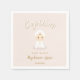 Baptism Flicka med Bonnet Detta vackra och söta baby är perfekt för ditt barns baptism. Utformningen består av en söt baby med en vit hoppdräkt, vit väska med guld kor och en vit hätta med en rosa bog. Bakgrunden till färg är en känslig rosa. Kolla in matchande tillbehör, presenter, party favors och kontorsmaterial.