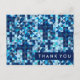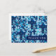 Ett geometriskt mönster av trianglar i blå nyans. De här vykorten matchar följande inbjudan: com