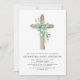Sage Grönt Girl's Eucalyptus and Wooden Kor Botanical Grey Watercolor Christian Religiösa Baptism Invations.