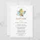 Den här eleganten och den enkla Baptisminbjudan har vackra grönt blå blad och guld kor på vit bakgrund. Använda Verktygen Design om du vill anpassa färgen text, teckensnitt och bakgrund. Finns även som digital nedladdning.