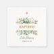 Den här bilden visningar en vackert designad baptism-Pappersservett. Tecknet på designen är en enkel symbol av elegant kor som visar evenemangets kristna betydelse. Under kor är en lush arrangemang av vattenfärgsgrej, med olika nyanser av grönt löv som ger en ny och naturlig beröring åt designen. Texten är väl utformad med en blandning av klassiskt och modernt typsnitt, där man betonar en elegant-baptism-ceremoni. Barnets namn har en framträdande plats, vilket visar vilket barn som ska dömas till döds.