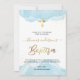 Baptism i Guld och blå vattenfärgspojke Tack Kort
