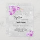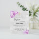 En faux silver tittar bakgrund med faux silver sparkles och rosa och violettblommor. Anpassa och lägg till ett namn och detaljerna. 1 lakan = 1 inbjudan tryckt kant till kant.