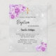 Observera att inbjudan är papper och mycket tunn. Kuvert ingår inte. Om du vill ha mer omfattande inbjudningar (samma design) kan du besöka vår butik. En faux silver tittar bakgrund med faux silver sparkles och rosa och violettblommor. Anpassa och lägg till ett namn och detaljerna.