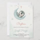 Baptism invitation features a cute illustration of a baby sleeping on a crescent moon with pastel stars. Text includes event details.