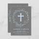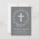 Den här moderna baptismen eller Christening inbjudan har en vattenfärgad elegant av stil blå blommigt och en blå kor. Idealisk för en pojke religiösa firande kan den anpassas till ditt barns namn och händelseinformation.