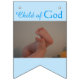 Fira pojke Baptismdag. Pojke står på båda sidorna i svart text. Ljusblå bakgrund med Baptism Day brev skrev svart text. Den vita bakgrunden Flagga 10 personifierar med Baby Namn, Date och Church Namn i svart och mörkblå geometriska ram. Flagga 11 infogar ditt foto, med Guds underbarn skrivet i blå text. 16 stora flaggor för en vacker visning utomhus eller inomhus. Originalteckning, fotografi och design © TamiraZDesigns.