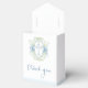 Den här designen har en vattenfärgsillustration av grön Vapensköld, blå Kor och blå rosett band. Du kan justera texten enligt dina krav.. Texterna "tack" skrivs i ett skript.