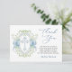 Tack Baptism/julkort. Den här designen har en vattenfärgsillustration av grön Vapensköld, blå Kor och blå rosett band. Du kan justera texten enligt dina krav.