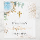 Baptism ljusblå blommigt pojke namn guld kor vinflaska etikett