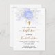 Baptism ljusblå blommigtar elegant vit inbjudan vykort