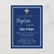 Baptism marinblå vit pojke guld kor inbjudan vykort